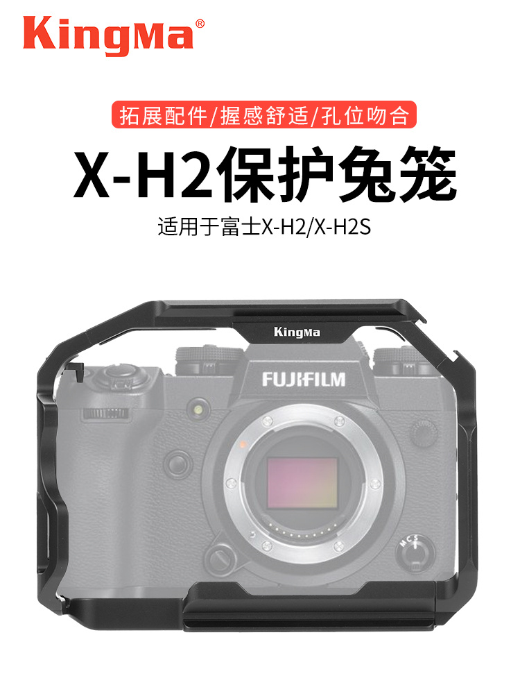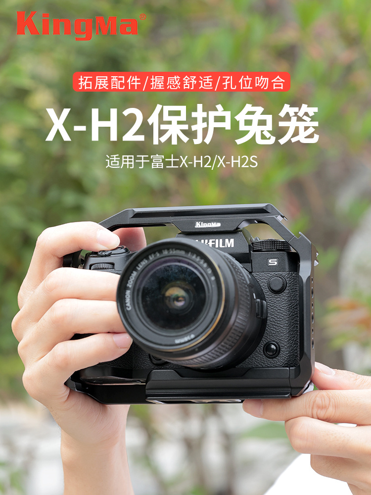 Клітка KingMa Cage XH2-RC з алюмінієвого сплаву розроблена спеціально для фотоапаратів Fujifilm X-H2 X-H2S і призначена для кріплення допоміжного обладнання: мікрофона , спалахи, накамерного світла, монітора, шарнірних кронштейнів та ін. Зручна та легка конструкція не блокує кнопки на камері, забезпечуючи вільний доступ до батарейного відсіку та слоту для картки пам'яті. XH2-RC: