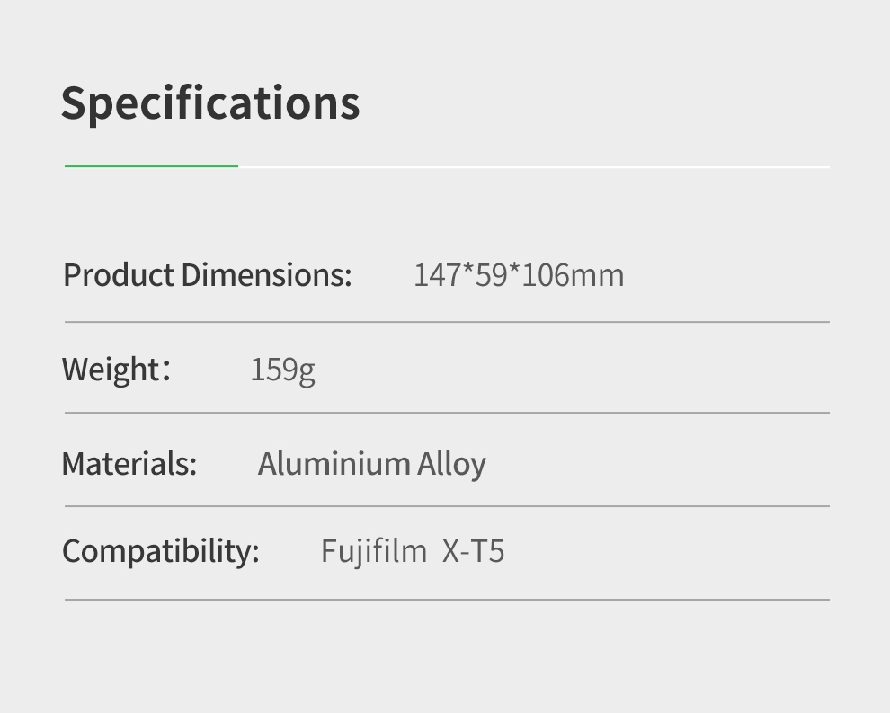 - Повна доступність всіх елементів управління на камері Fujifilm X-T5. Для режиму ручної зйомки передбачені отвори для плечового ременя та ремінця на зап'ясті.