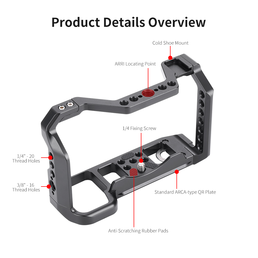 Клітка KingMa Cage A9 III-RC з алюмінієвого сплаву розроблена спеціально для фотоапаратів Sony Alpha a9 ii a9 iii і призначена для кріплення допоміжного обладнання: мікрофона , спалахи, накамерного світла, монітора, шарнірних кронштейнів та ін. Зручна та легка конструкція не блокує кнопки на камері, забезпечуючи вільний доступ до батарейного відсіку та слоту для картки пам'яті. A9 III-RC: