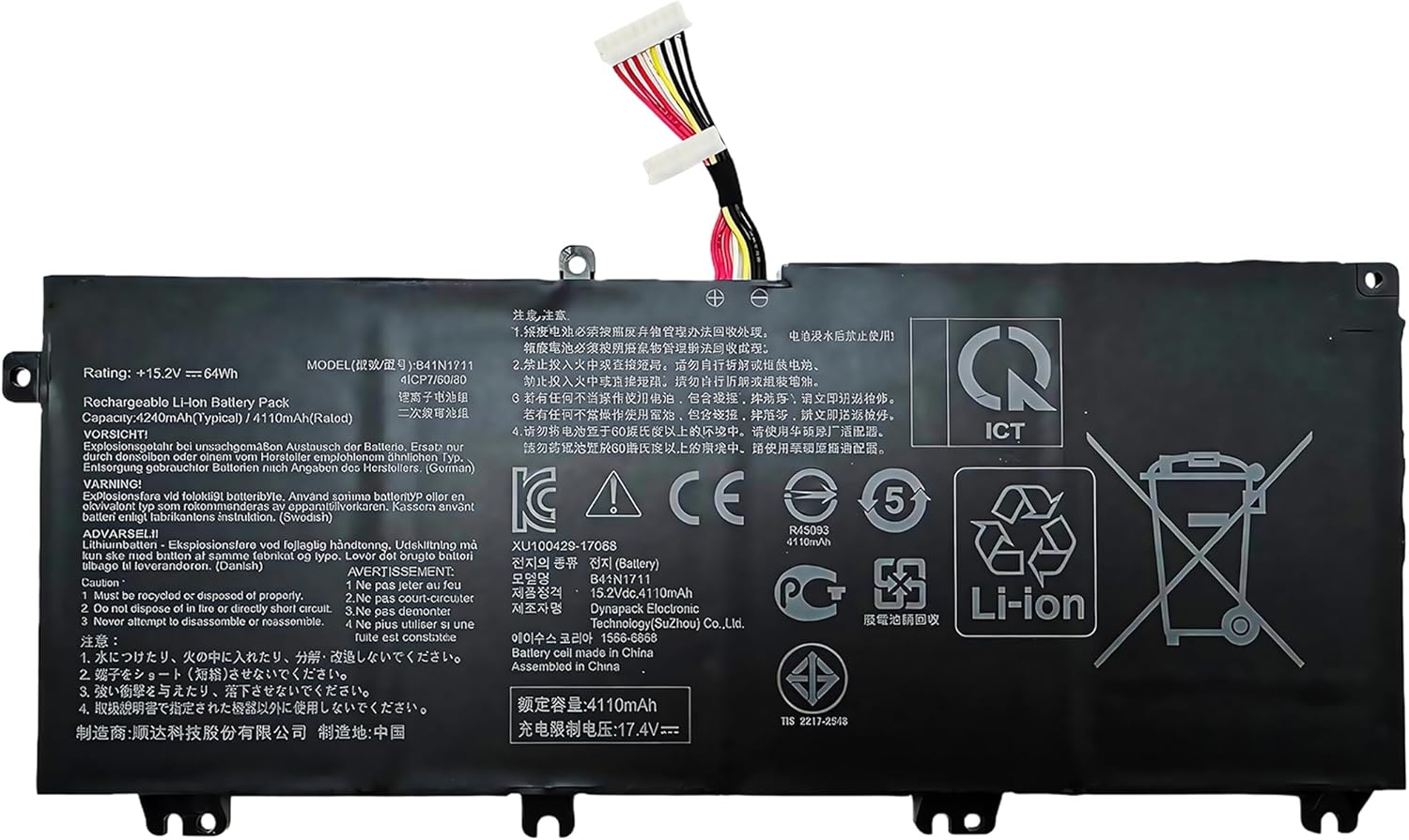 Оновіть продуктивність свого ноутбука ASUS та насолоджуйтесь продовженим використанням завдяки замінній батареї B41N1711 (Replacement). Цей високоякісний батарейний блок є ідеальною заміною для зношеної або пошкодженої батареї і розроблено спеціально для сумісних моделей ноутбуків ASUS (усі сумісні моделі тут):