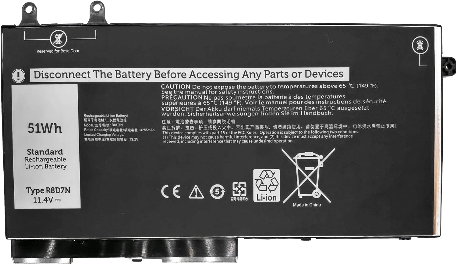 З ємністю 4255 mAh (мАг) та рейтингом напруги 11.4 V (В) і міцності 51 Wh (Вт/год), ця батарея забезпечує достатню потужність для тривалого використання. Позбудьтеся частого заряджання та насолоджуйтесь батареєю, яка відповідає вашому активному способу життя.