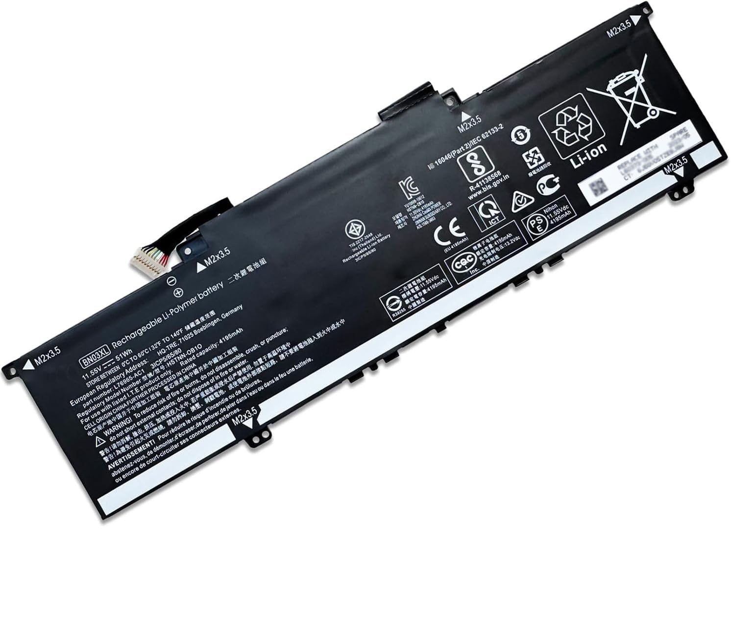 З ємністю 4195 mAh (мАг) та рейтингом напруги 11.55 V (В) і міцності 51 Wh (Вт/год), ця батарея забезпечує достатню потужність для тривалого використання. Позбудьтеся частого заряджання та насолоджуйтесь батареєю, яка відповідає вашому активному способу життя.