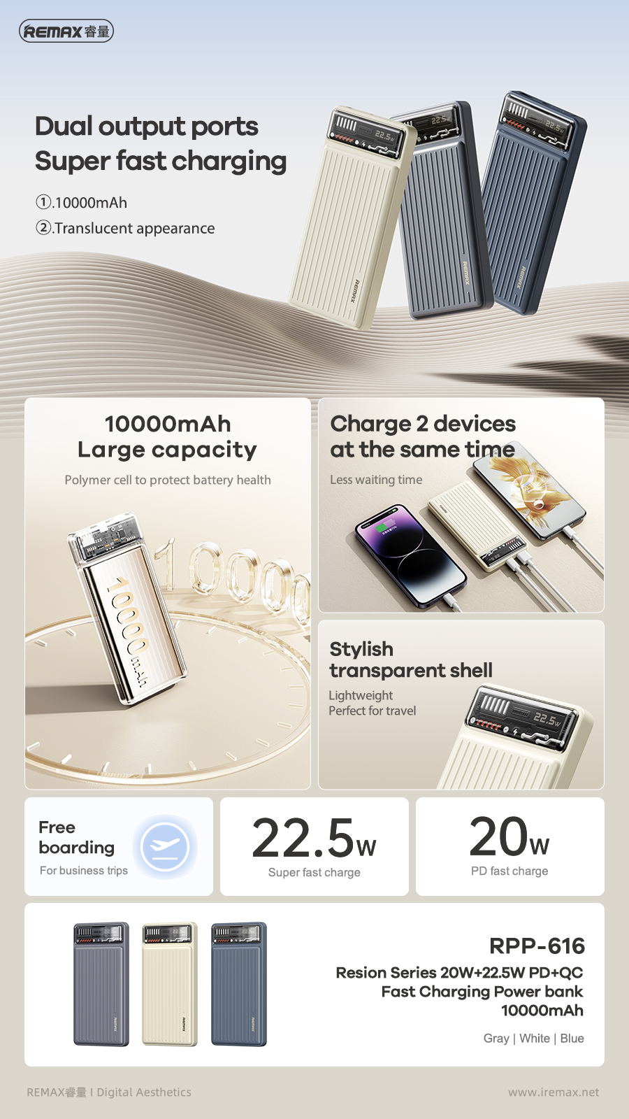 | Модель | REMAX Power Bank 10000 mAh RPP-616 Resion Series |