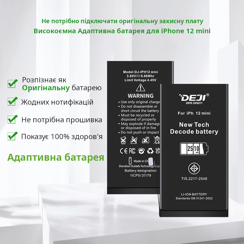 - Акумулятор DEJI iPhone 12 mini (2510 mAh) для Apple