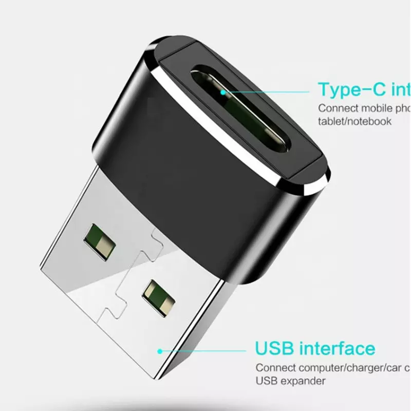 USB-A Male - Type-C Female адаптер Mindpure в чорному кольорі дозволяє підключати кабелі Type‑C до будь‑якого порту USB‑A. Він підходить для зарядних блоків, автомобільних зарядок, ноутбуків та ПК, забезпечуючи як передачу даних, так і заряджання пристроїв.